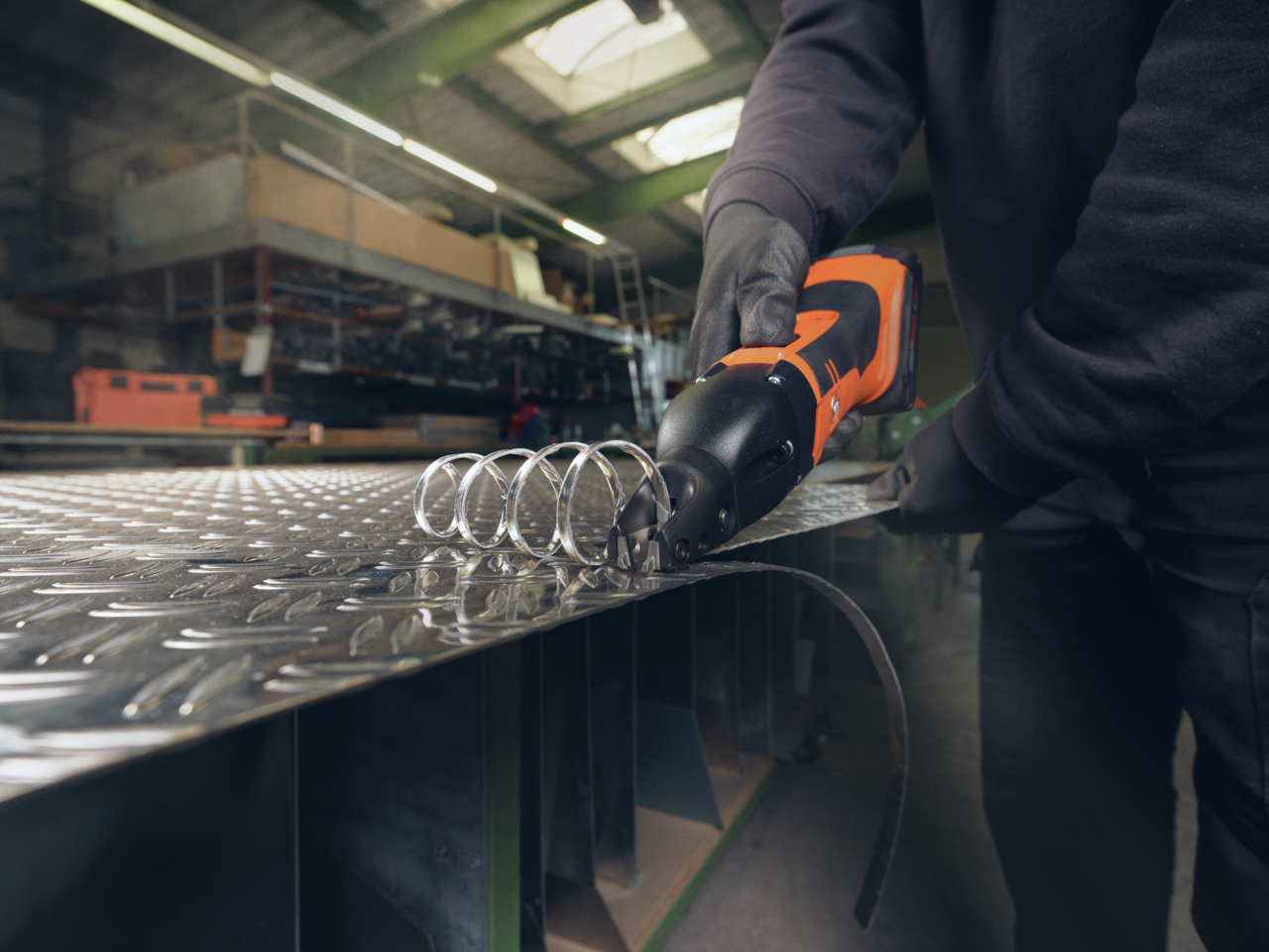 - Bir akü şarjı (5 Ah) ile 180 m kesme kapasitesi (0,8 mm’lik sacda).