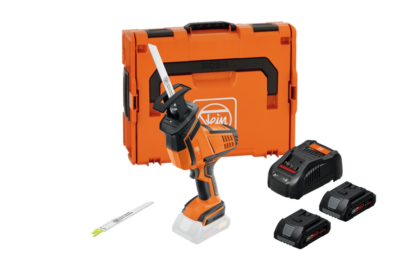 Özellikle ulaşılması zor yerlerde çeşitli malzemeleri keserek ayırmak için, mobil ve üniversal kullanıma yönelik kompakt, düşük titreşimli tilki kuyruğu testere. 2 x 4 Ah ProCORE akü ve hızlı şarj aletinden oluşan akü başlangıç seti.