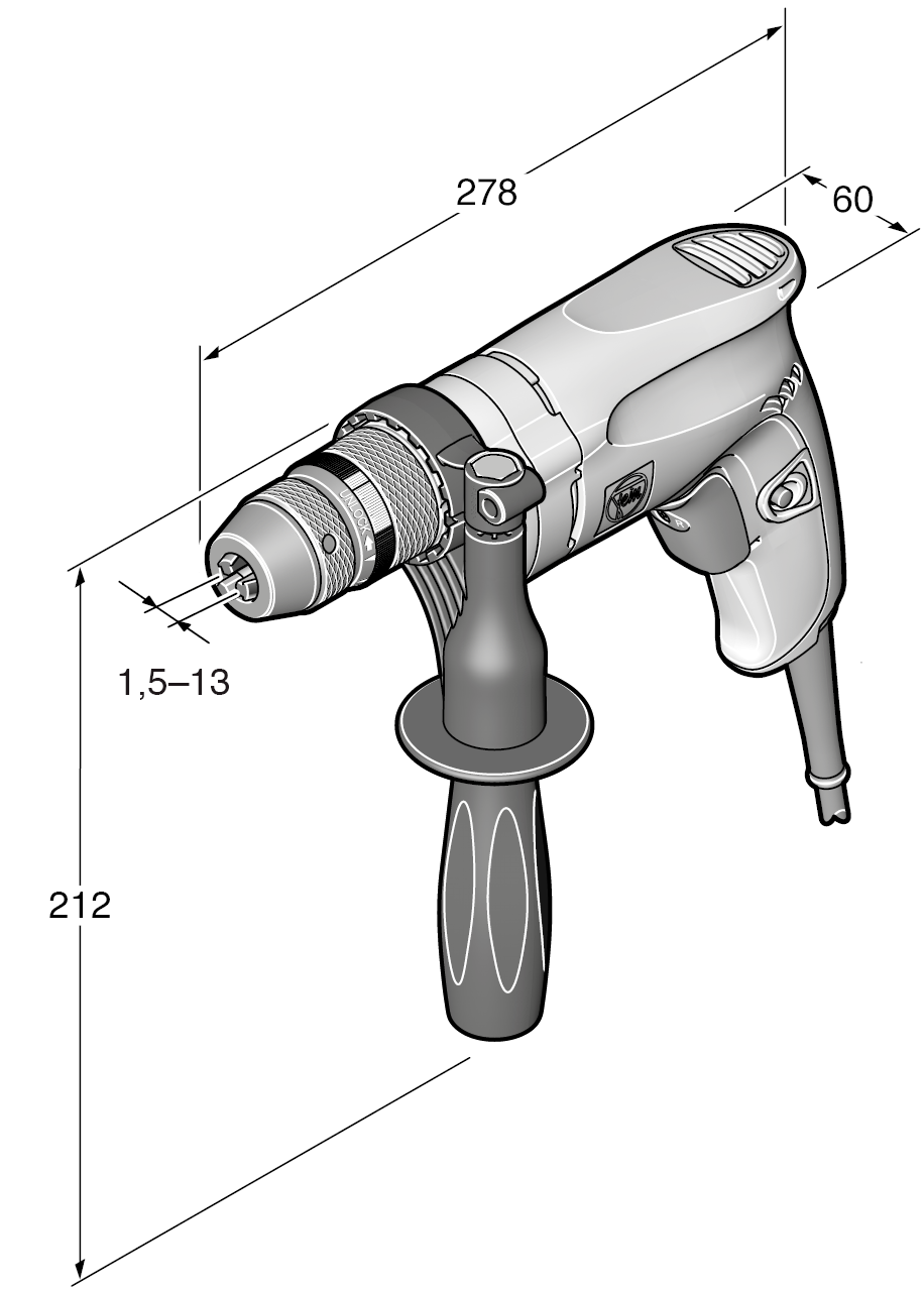 Yerinde montaj çalışmaları için 10 mm’ye kadar, kompakt ve devir sayısı sabitliğine sahip tek devirli matkap.