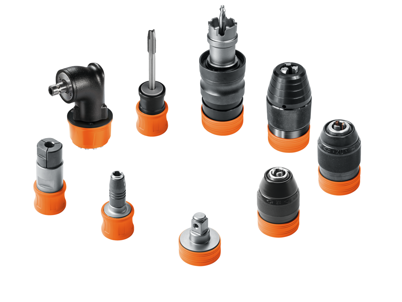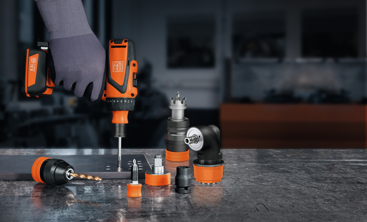 Dar yerlerde delme, kılavuz çekme ve vidalama işleri için metal dirsekli kafa. Mandrenler, Bit uçları veya lokma adaptörleri gibi tüm FEIN QuickIN aksesuarları, dirsekli kafaya tespit edilebilir. QuickIN / QuickIN MAX ara birimine sahip tüm FEIN akülü vidalama makineleri ile uyumlu.