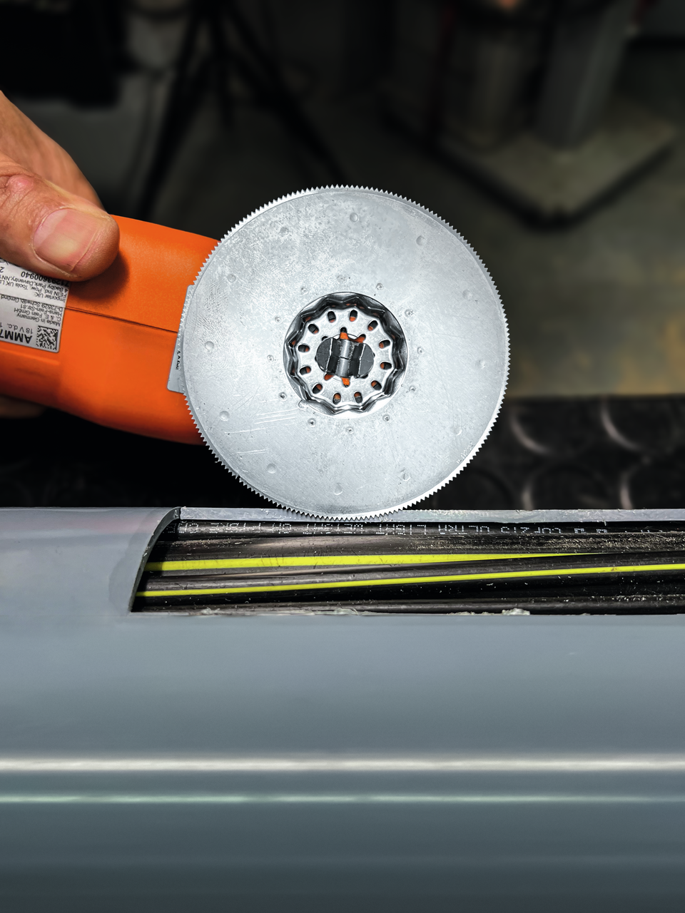 FEIN Tükenmez Derinlik Kılavuzlu Testere Bıçağı. İç kabloları zarar vermeden veya altta yatan malzemeyi hasar vermeden kablo kanallarını ve diğer plastik kapları zahmetsizce açmak için mükemmel. Hassas kesimler – tam olarak 2,5 mm derinlik.